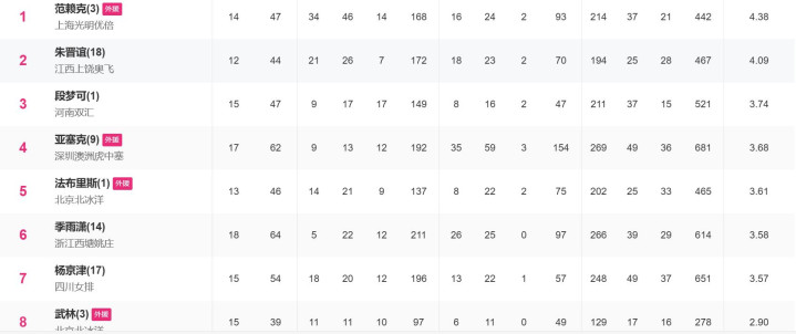 副攻位置的排名,倒是有了光显的变化,马丁内斯凭借对阵北京的精彩证据,一跃登上了副攻榜的第一位。本来排在榜首的陈厚羽,则所以2.65的评分跌到了第2名,杨涵玉和郭中楠分列第6和第7,这两东说念主的排名大体保抓不变。反而是策应位置,出现了一些惊喜,来自河南女排的小将段梦可异军突起,杀到了策应榜的第三位,也成了A级联赛的原土第一策应。除了范莱克的排名高于段梦可,其余原土副攻的后果和评分齐不如段梦可,毫无疑问段梦可本年的发达如实也不小。无奈河南女排的收获平平,固然完成了保级任务,要念念冲击四强依旧是难如登天。好在段梦可的崛起,也位河南队注入了一些更生代力量,河南女排异日可期。